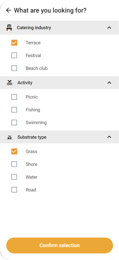 Op zoek naar een terras of een grasveld om te picknicken? Geef jouw voorkeur aan voor de plek waar je wilt genieten in de zon of schaduw.